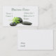 Le carte de visite avec les pierres noires de thérapie et la feuille verte avec de l'eau se laissent tomber