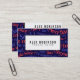 Une conception moderne comportant des expressions françaises de débutant dans le corail et le bleu sur un arrière - plan de bleu marine. Au milieu, il y a un boîtier blanc avec un contour noir pour votre nom et profession, ou une raison sociale et un tagline. Ce serait parfait pour un professeur de langue française ou un tuteur privé. Sur le dos, la conception est répétée avec plus d'espace pour vos détails.