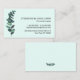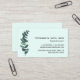 Ce carte de visite simple mais élégant est conçu avec une seule tige d'eucalyptus dans des teintes turquoises avec votre nom, profession, les coordonnées et l'adresse dans une police de caractères noir classique sur un arrière - plan vert menthe clair des deux côtés. Utilisez les champs modèle pour saisir vos propres informations et supprimer ce qui n'est pas nécessaire, comme un numéro de fax, ou ajouter d'autres informations au besoin. L'envers affiche une plus petite tige d'eucalyptus.