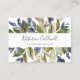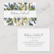 Ce carte de visite de verdure d'automne est parfait pour un propriétaire de petite entreprise, consultant, styliste et plus encore! Le design rustique moderne présente des feuilles bleu marine, vert sauge et or avec des branches de fleurs bleu foncé.