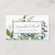 Ce carte de visite de verdure d'été est parfait pour un propriétaire de petite entreprise, consultant, styliste et plus encore! Le design botanique présente un agencement luxuriant d'eucalyptus couleur aquarelle peint, de verdure et de feuilles verts avec de subtils ressorts de fleurs roses rousses.