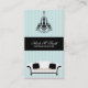 Des cartes de visite design avec un canapé design et un beau lustre. Art par Mujka Design Inc