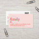 Design carte de visite moderne et professionnel personnalisé avec un style de conception de définition de dictionnaire. Avec des champs modèles pour nom, nom de société/titre, coordonnées et code QR (supprimer si vous préférez). Texte minimaliste simple moderne rouge sur arrière - plan rose. Modifiez les couleurs arrière - plans, déplacez et redimensionnez les éléments à l'aide de l'outil de personnalisation. ©Marisu Valencia