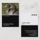 Un modèle de carte de visite avec une moitié inférieure noire bordée de blanc. Le design avant comprend une photo ou une oeuvre d'art dans la partie supérieure. Le même thème est répété à l'arrière sans l'image, permettant la place pour d'autres détails et une personnalisation plus poussée. Les trois motifs carré utilisés comme élément décoratif sur le dos proviennent d'une des polices d'image utiles de Zazzle et peuvent être utilisés comme élément décoratif ou remplacés par votre propre logo ou décoration.