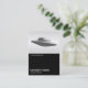 Un modèle de carte de visite avec une moitié inférieure noire bordée de blanc. Le design avant comprend une photo ou une oeuvre d'art dans la partie supérieure. Le même thème est répété à l'arrière sans l'image, permettant la place pour d'autres détails et une personnalisation plus poussée. Les trois motifs carré utilisés comme élément décoratif sur le dos proviennent d'une des polices d'image utiles de Zazzle et peuvent être utilisés comme élément décoratif ou remplacés par votre propre logo ou décoration.