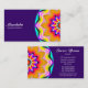 Un carte de visite avec un motif de mandala mi-kaléidoscopique attrayant. Nom d'entreprise etc sur le devant avec d'autres détails sur le verso avec une variation sur le même motif.