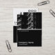 Un modèle de carte de visite avec une moitié inférieure noire bordée de blanc. Le design avant comprend une photo ou une oeuvre d'art dans la partie supérieure. Le même thème est répété à l'arrière sans l'image, permettant la place pour d'autres détails et une personnalisation plus poussée. Les trois motifs carré utilisés comme élément décoratif sur le dos proviennent d'une des polices d'image utiles de Zazzle et peuvent être utilisés comme élément décoratif ou remplacés par votre propre logo ou décoration.