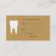 Businescard élégant avec un logo blanc de dents sur l'arrière - plan de cru de carboard. Sur le postérieur vous trouverez une section gentille pour vos rendez-vous patients. Voir le notre magasin pour les cadeaux et l'habillement de pratique dentaire pour le dentiste, l'hygiéniste dentaire et l'assistant dentaire. Trouvez hilare les tasses, les tabliers et les T-shirts drôles d'humour de dentiste ! Plus, nous portons également le magnet et les boutons dentaires d'humour pour porter, montrer ou donner loin !