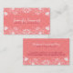 Elégante dentelle vintage de couleur blanche sur les damas rouges de corail. Disponible sur d'autres produits. Modèle de carte de visite entièrement personnalisable. Toutes les combinaisons de couleurs sont disponibles sur demande par e-mail.