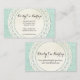 Carte De Visite Dentelle rustique Doily sur Aqua Blue Burlap