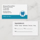Modèle de design personnalisé carte de visite de bureau pour dentistes créé avec un emblème de dent dentaire et modèle de rendez-vous affiché à l'envers. Conçu pour un spécialiste de l'industrie dentaire, Orthodontiste ou Endodontique.
