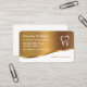 Classy Dentist carte de visite avec look or arrière - plan moderne graphique et symbole de dent ainsi qu'une mise en page simple que vous pouvez customiser en ligne. Permet de distribuer vos cartes de visite dans le style et est conçu pour un bureau de dentiste, Orthodontiste, ou toute entreprise de l'industrie dentaire. Présenté sur un stock carte de visite arrondi en angle pour un design plus durable.