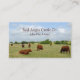 Un carte de visite montrant un champ rural avec du bétail Angus rouge broutant sur l'herbe. Un bon design pour n'importe qui dans l'agriculture et l'agriculture.