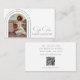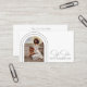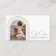 Design Modern Script Photo QR Code Photographie Photographe Carte de visite dispose d'un script élégant et élégant en argent avec votre photo préférée dans des arcs dorés avec vos détails d'affaires et le site Web d'affaires personnalisé QR code au verso. Au verso, vous trouverez vos coordonnées personnalisées. Conçu par © Evco Studio www.zazzle.com/store/evcostudio