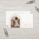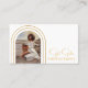 Design Modern Script Photo QR Code Photographie Photographe Carte de visite dispose d'un script doré élégant et élégant avec votre photo préférée dans des arcs dorés avec vos détails d'affaires et le site Web professionnel personnalisé QR code au verso. Au verso, vous trouverez vos coordonnées personnalisées. Conçu par © Evco Studio www.zazzle.com/store/evcostudio