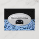 Automobile détaillant modèle de carte de visite dans un cool design deux côtés avec gouttes d'eau dans l'arrière - plan et l'emblème de l'entreprise avec un symbole de voiture. Présenté sur notre stock carte de visite de format plus grand qui est plus grand que la taille standard pour un impact visuel supplémentaire. Conçu pour un service de lavage de voiture ou de détail.