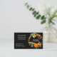 A modern and trendy circular photo comprising of a mix of colorful and healthy fruit and vegetables set against a black background that has custom templates for your details and/or image. This business card design is ideal for healthcare professionals; greencare career individuals or anyone specialising in farming and food; or for nutritionists and dietitians.