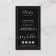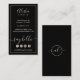 Un design carte de visite élégant et sophistiqué, parfait pour un large éventail d'entreprises. Le script à la mode Blush Pink et la typographie san serif créent un look chic et élégant contre un arrière - plan noir riche avec un cadre rose vif simple. Les coordonnées sont affichées dans un rose pâle. "Say Hello" est affiché au-dessus de quatre icônes de médias sociaux (Pinterest, Twitter, Instagram et Facebook) et personnalisez avec votre nom d'utilisateur/pseudo de médias sociaux. Le côté inverse est composé d'un cercle élégant et d'un monogramme de script. Ce magnifique carte de visite allie des roses douces et du noir riche pour créer une combinaison sophistiquée et chic, parfaite pour les wedding planners, les planificateurs d'événements, les spas, les stylistes, les maquilleurs, l'industrie de la beauté, la mode, les designers d'intérieur et bien plus encore.