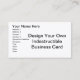 Voulez un carte de visite qui dure et dure ? Concevez votre propre carte de visite sur le materla indestructible vigoureux ! Téléchargez une photo, ajoutez le texte, changez la couleur d'arrière - plan… qu'elle est tout au sujet de vous, et ce que vous voulez !
