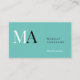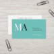 Un design élégant qui ne manquera pas d'attirer l'attention. Avant a arrière - plan turquoise, arrière a arrière - plan blanc avec initiales et texte blancs et noirs. Fonctionne bien pour de nombreuses professions : Designers d'intérieur, Consultants, Cheveux et Maquillage, Professionnels d'entreprise, Realtors, Sales Associates, Estate Planners et plus encore. do-it-yourself Monogramme, nom, profession, adresse, téléphone/cellule, site Web et courriel.