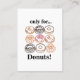 Donut Doughnut Sweet Bakery Carte de visite alimentaire design original par Nisha Prabhu. Entièrement Personnalisable. Personnalisez avec vos détails. Édulcorez votre image professionnelle avec notre "Carte de visite beignet beignet beignets beignets"! Parfait pour les boulangers, les pâtissiers ou tous ceux qui travaillent dans la boulangerie, cette carte de charme combine un design délicieux avec des informations de contact essentielles pour laisser une impression durable sur vos clients et clients. Doté d'un graphisme de beignes coloré et accueillant associé à une police ludique, ce carte de visite saisit l'essence de vos douceurs et met en valeur votre amour pour la cuisson dans le style. Que vous soyez à la tête d'une boulangerie locale, d'une boutique de desserts branchée ou d'un food truck qui sert des sucreries, ce carte de visite est une représentation exquise de votre marque.