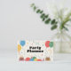 Une carte de visite d'organisateur de fêtes décorée de gâteaux d'anniversaire, de ballons colorés, de chapeaux de fête, de twists et de confettis. Parfait pour les cartes d'invitation ou pour les organisateurs d'événements tels que les anniversaires d'enfants ou d'adultes, les lancements de produits, les baby showers, les célébrations de famille, les anniversaires de mariage, les enterrements de vie de garçon, les fêtes à thème, etc. Le verso de la carte contient toutes les informations de contact et une liste de services.