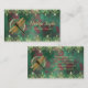 Ce carte de visite de taille standard présente une libellule d'or sur un arrière - plan vert orné de rhinocéros et de feuilles.