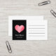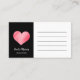 Vous avez besoin de laisser une note pour un ami, ou vous voulez donner votre numéro de portable à un nouvel associé? Utilisez cette carte de contact rose et noir avec un coeur rose mignon et un endroit pour votre nom et votre téléphone mobile ou d'autres informations de contact. Le dos est vide pour plus d'espace d'écriture. Cette carte peut être personnalisée en choisissant la couleur qui convient le mieux à votre personnalité.