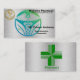 Arrière - plan d'argent, avec quelques logos différents mélangés dans un design joliment travaillé. La croix verte standard avec pharmacie écrite à l'arrière.