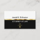 Cartes de visite de procureur avec un design à deux côtés puissant mais simple en noir et blanc qui comprend une échelle d'or simulée de la justice, ligne de séparation or, et disposition de texte que vous pouvez customiser et personnaliser. Meilleurs cartes de visite pour un cabinet d'avocats, un cabinet d'avocats, un avocat ou un avocat de la défense.