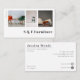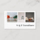 Ce carte de visite moderne sur mesure pour magasin de meubles, menuisier, antiquaires ou tapisseurs dispose de 3 modèles pour ajouter vos photos préférées. Tous les détails tels que nom et les médias sociaux ou les coordonnées peuvent être customisés individuellement. Si vous n'avez pas besoin d'informations, supprimez simplement la ligne.