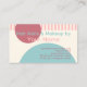 Beau carte de visite de maquillage artistique. Avec un vert marine clair contemporain, des cercles ronds turquoises pastel et rose vif et des rayures motif sur un arrière - plan blanc cassé en ivoire combiné à une police minimaliste moderne. Cliquez sur "Personnalisez" pour trouver le modèle prêt à être customisé avec votre nom d'entreprise unique, votre profession et vos coordonnées, et le texte de votre choix. Ce design particulier, joli et unique, a été conçu pour ceux qui aiment les pastels aux couleurs vives et les dessins abstraits géométriques classiques sophistiqués.