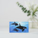 Deux épaulards femelles et un mâle chassent ensemble dans un bel océan limpide.