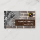Couvrez les caractéristiques une stylique élégante de brique de plaquette en bois fondamentale de grain. Cette plaquette tient vos détails prestigieux de nom et de contact. Vers le visage gauche est une éclaboussure de ciment que seulement une personne de réparations de maison d'expert peut rectifier. Il y a une option de logo d'or d'un marteau que vous pouvez utiliser au coin haut droit.