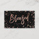 Un pulvérisateur moderne et élégant bronze le carte de visite bronzé avec la typographie moderne de brosse de style de lettrage de main dans la feuille d'or rose de faux sur des éclaboussures des confettis d'or de rose avec l'arrière - plan noir personnalisable.