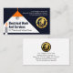 Une bougie dans l'obscurité est éclairée par une lampe aérienne à laquelle vous avez restauré l'électricité. À l'intérieur du faisceau lumineux se trouve votre nom d'entreprise et une légende de slogan que vous pouvez changer. En haut, vous trouverez les coordonnées avec un logo de jauge d'alimentation en or que vous pouvez utiliser. En haut se trouve le logo or, suivi de votre nom prestigieux, de vos coordonnées et de votre option de slogan pour faire connaître votre entreprise. Il s'agit d'une excellente carte créative pour les électriciens.