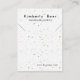 Doté d'une texture terrazzo blanche épurée, ce carte de visite est parfait pour les créateurs de bijoux qui cherchent à afficher leur logo et leur collier/bracelet de manière élégante et professionnelle. L'arrière - plan en pierre céramique simple et moderne terrazzo met en valeur votre marque, tandis que l'espace pour les liens de médias sociaux aide à se connecter avec les clients. Idéal pour les artisans, ce carte de visite design fait main apporte une touche personnelle à votre entreprise. Commandez vos cartes de visite d'affichage personnalisés dès aujourd'hui et élevez votre marque!