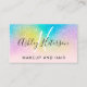 Un élégant monogramme moderne , un carte de visite de maquillage élégant et moderne avec une élégante typographie de style à la main simple et moderne en blanc sur une parties scintillant arc-en-ciel multicolore et sur un doux rose pastel rose tendance et élégant arrière - plan. tout le texte est personnalisable, ajoutez vos médias sociaux.
