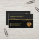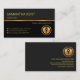 Au-dessus de la feuille, les détails sont au mur droit dans une couverture gris foncé. Le logo est en haut, suivi de votre nom prestigieux, des coordonnées et d'une légende de slogan pour faire connaître vos services. Toutes les lettres sont en faux or.