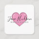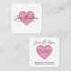 Carte de visite éditable à motif de cœur rose minimaliste élégante 6,35 cm x 6,35 cm