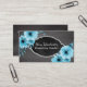 Tableau à la mode et cartes de visite de fleurs jolis pour des professeurs, des tuteurs, et des éducateurs avec un arrière - plan de tableau de faux sur l'avant et le dos. Le nom et la profession du professeur personnalisé sur l'avant encadré par une étiquette de tableau de faux avec la frontière argentée de regard de parties scintillantes. Des coins sont ornés avec les bouquets bleus et sensibles en pastel de fleur d'aquarelle. Le dos a personnalisé des détails de contact, y compris des médias sociaux, dans les lettres blanches. Note : Toutes les images sont imprimées. Surface non réelle de parties scintillantes ou de tableau.