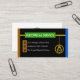 Cover features an electric circuit design using all the colors that represent the wiring system. The green tab stripe at the top carries your business name "ELECTRICAL SERVICE" which you can change. Just below this inside the brown vertical stripe are your card details in their respective gold electric symbol buttons.