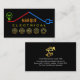 At the top lies your prestigious name alongside the business name "ELECTRICAL" which you can change. Near the base is an array of gold electrical symbols.