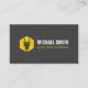 Un carte de visite moderne et professionnel avec un logo de silhouette d'une prise électrique sur une forme hexagonale jaune. Parfait pour les électriciens et ceux qui fournissent des services de câblage électrique et d'installation d'éclairage. Personnalisez vos informations professionnelles dans les modèles de texte fournis.