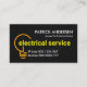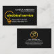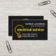 Une couche de grunge entièrement noire est munie d'une ampoule jaune qui porte le nom d'entreprise "service électrique" et ses coordonnées. Au sommet, vous trouverez votre nom prestigieux et une légende de slogan que vous pouvez changer. En haut, vous trouverez le logo de l'électricien lettre-e que vous pouvez utiliser, suivi de votre nom prestigieux, des coordonnées et d'une option de légende de slogan que vous pouvez modifier. Une carte créative pour les entreprises électriques à utiliser.