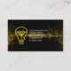 Une onde jaune électrifiante s'écoule sur la face de la carte alimentant le courant des câbles de la prise d'alimentation et de l'ampoule. Votre titre de travail "électricien" au sommet peut être modifié pour répondre à vos besoins professionnels. Juste en dessous, vous trouverez votre nom prestigieux ainsi que les coordonnées de la base.