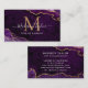 Élégant moderne chic violet violet or Parties scintillant marbre Agate Monogramme Carte de visite