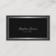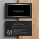 Classy vintage style calligraphy business card with a faux silver metallic frame over an elegant black background. Easy to personalize with your details and automatically generated scanning QR code. ++++++++++++ Suitable for exclusive beauty salons, luxurious boutiques, interior designers, makeup artists, and hair stylists.