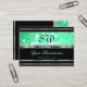 Carte De Visite Elegant Black Teal Green Glitter Monogram Silver