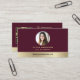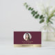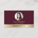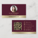 Carte De Visite Elegant Burgundy Gold Logo QR Code Photo